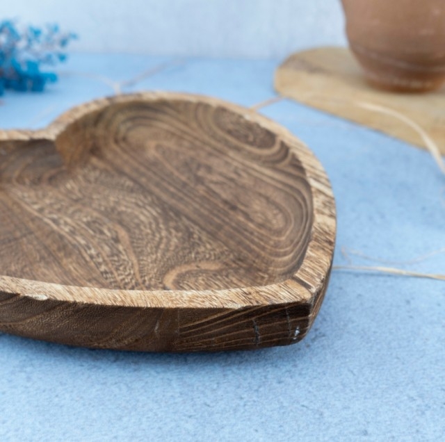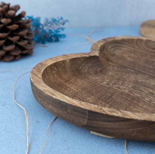 Den lille versjonen passer til snacks, ost, kaker eller små retter, med kompakt størrelse på rundt 25–27 cm i diameter. Naturlig trestruktur gir et estetisk, miljøvennlig uttrykk som løfter borddekket. Lettvektig design gjør den enkel å håndtere i hverdagen eller ved servering.