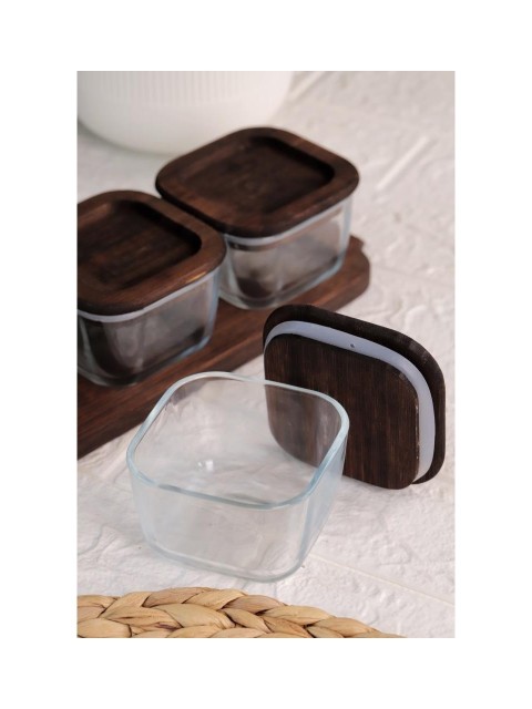 3 stk firkantede glasskåler (6 × 6 cm hver).