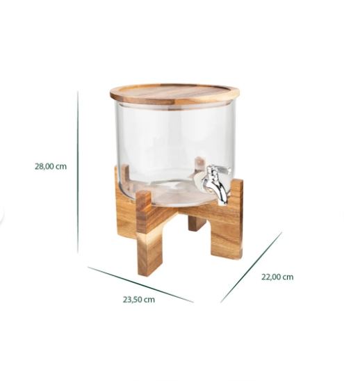 Fonte akasietre-lokk og stativ glassdispenser 3,5 L (eller 3,4 L)