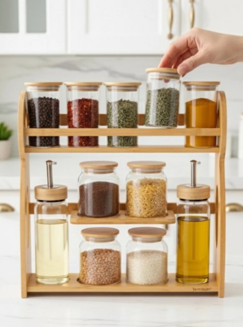 Layla Oppbevaringssett Bambum Layla – 12-delt kjøkkensett | Naturlig og stilig presentasjon. For deg som søker orden, stil og funksjonalitet på kjøkkenet, utmerker Bambum Layla 12-delt kjøkkensett seg med naturlige bambudetaljer. PrisNOK1 699,00 inkl. mva. På lager Kjøp Ønskeliste Del dette Produktinfo Produktanmeldelser (0) Innhold og mål 1 stk stativ: 36 x 34 x 11 cm. 2 stk oljeflasker: 21 x 6 cm – 300 ml. 4 stk glasskanner: 9,5 x 7,5 cm – 250 ml. 5 stk krydderholdere: 10,5 x 5,5 cm – 140 ml. Egenskaper Materiale: Glasskropp og naturlig bambulokk – sunt, hygienisk og langvarig. Vakuumlokk holder krydder, bakliyat og væsker friske lenge. Kompakt stativ gir orden og visuell harmoni på benken, med multifunksjon for olje, eddik, krydder og kanner. Fordeler Ett sett samler orden, eleganse og praktisk bruk. Perfekt som bryllupsgave eller hjemmeoppgradering, med bambu som tilfører varme. Enkel rengjøring: Glass i maskin på lav temperatur. Skriv en produktanmeldelse og del dine erfaringer med dette produktet med andre kunder. Email Navn Din vurdering? 1 star 2 star 3 star 4 star 5 star 6 star Oppgi en tittel for anmeldelsen din Skriv inn produktanmeldelsen i feltet under