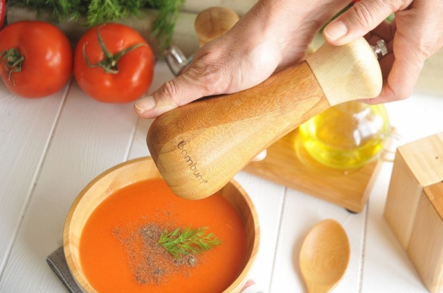Egenskaper: Kompakt bambusdesign med krom- eller keramiske blader som tåler fuktighet, perfekt for bordbruk. Antibakteriell, enkel å fylle og justere for fin-/grovkorn.