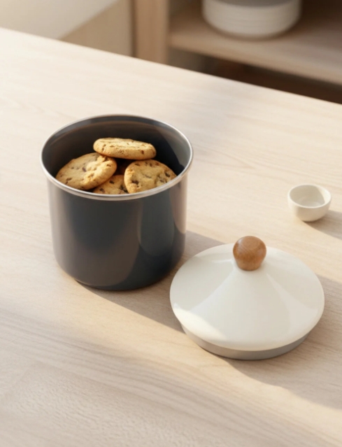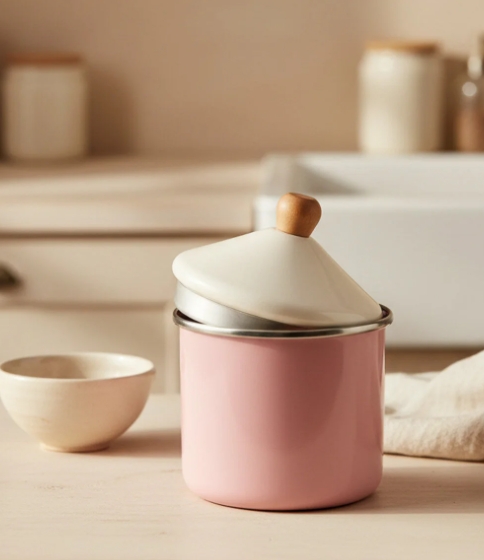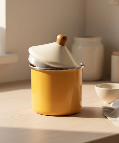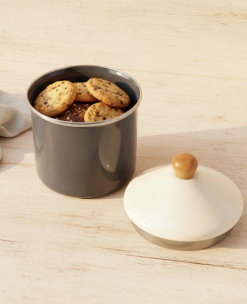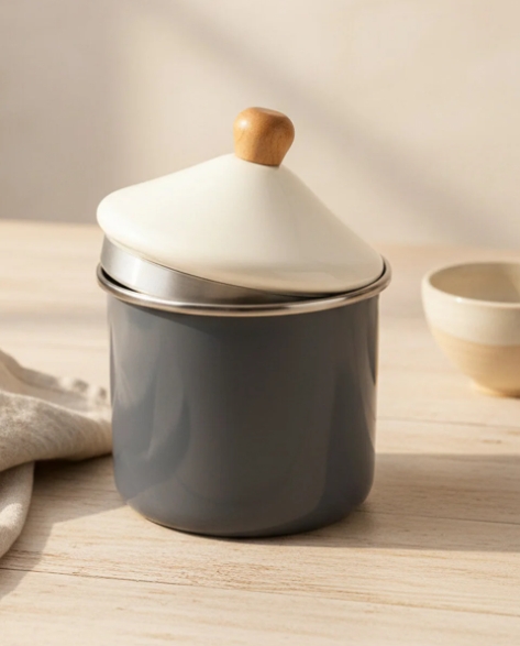 Den egner seg også som liten oppbevaringskrukke til kaffe‑kapsler, nøtter eller snacks, eller som dekorativ boks til småting på spisebord eller frokostbrett.