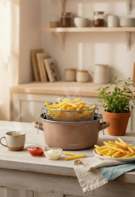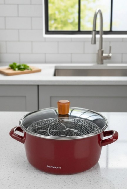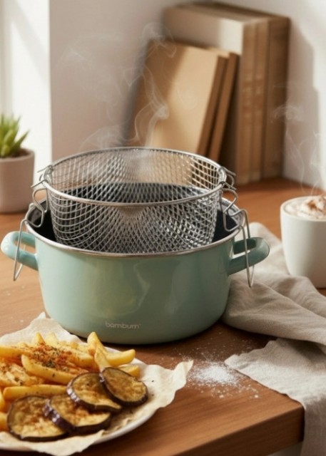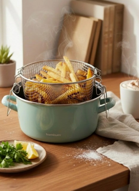Med sitt nostalgiske design gir Bambum Nostalji stekegryte kjøkkenet ditt et stilfullt preg, og den 22 cm brede diameteren gir et godt arbeidsområde til fritering og steking.