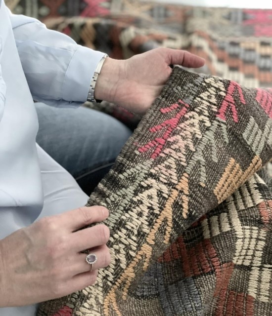 Teknikk: Håndvevd med geometrisk brodert mønster