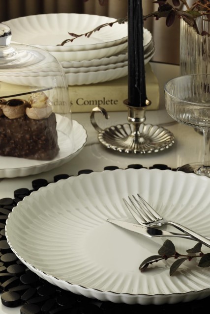 Kütahya Porselen Bone Luz Form 27-dels servisesett for 6 personer – Platindekor