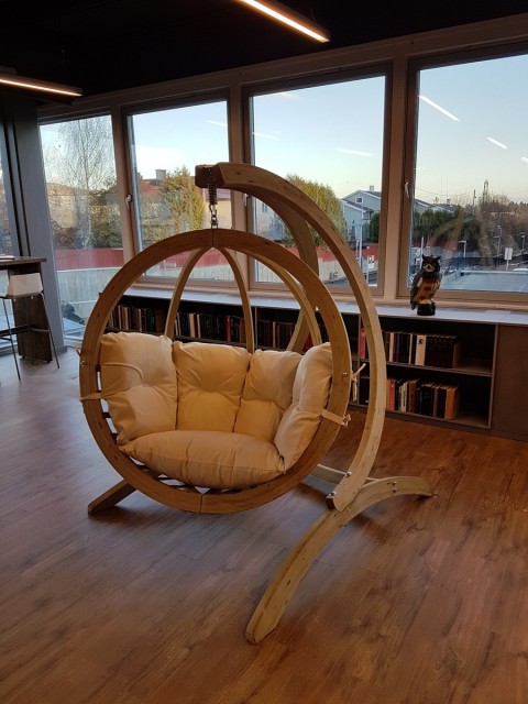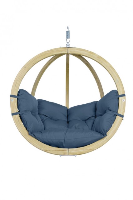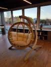 Globo Hengestol er nøye håndlaget av robust og værbestandig tre, noe som sikrer både varighet og stil. Den polstrede puten gir ekstra komfort, mens den buede formen gir en avslappende vuggebevegelse som støtter ryggen din perfekt. Denne hengestolen er like ideell for en koselig stue som for en solrik hage.