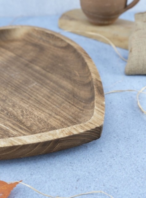 Den lille versjonen passer til snacks, ost, kaker eller små retter, med kompakt størrelse på rundt 25–27 cm i diameter. Naturlig trestruktur gir et estetisk, miljøvennlig uttrykk som løfter borddekket. Lettvektig design gjør den enkel å håndtere i hverdagen eller ved servering.