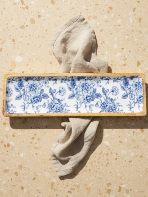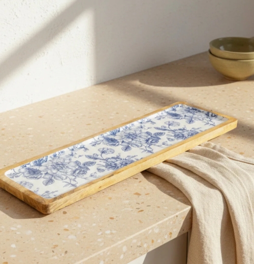 Bambum Gura rektangulært tepsi med rose-motiv i stor størrelse er et elegant valg for daglig servering.