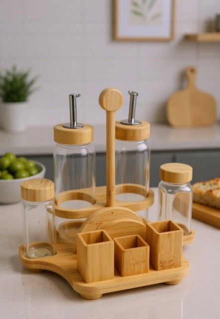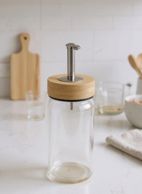 Oljeflasker (2 stk): 200 ml hver (Ø6–7 cm, H12–14 cm).