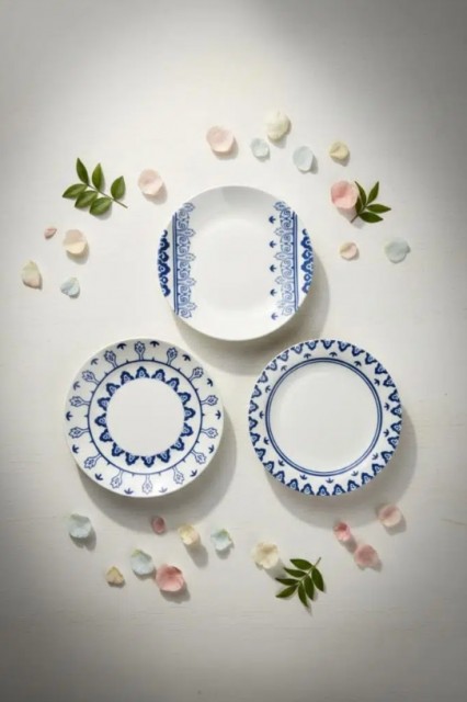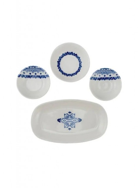 Settet er laget av slitesterkt, høykvalitets porselen med hvit bunn og blå Maku‑mønstre som gir et moderne,