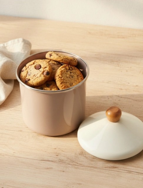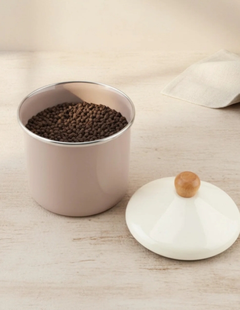 Den egner seg også som liten oppbevaringskrukke til kaffe‑kapsler, nøtter eller snacks, eller som dekorativ boks til småting på spisebord eller frokostbrett.