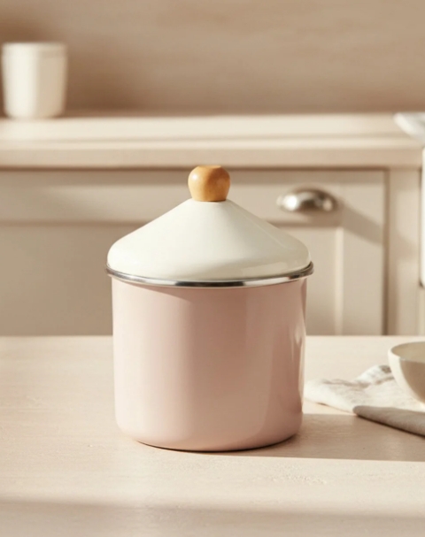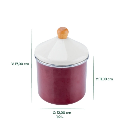 Låket er lett konisk formet for et nostalgisk emalje‑preg og sitter godt ned over kanten,