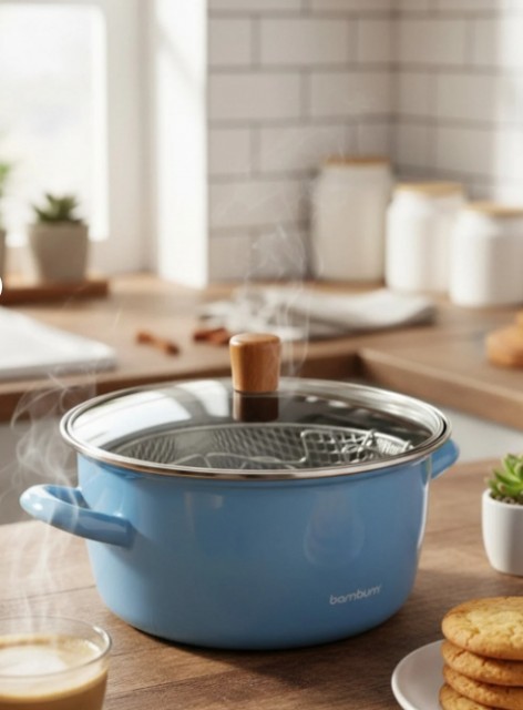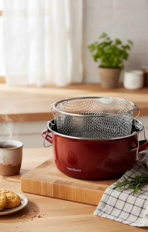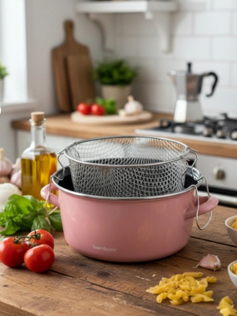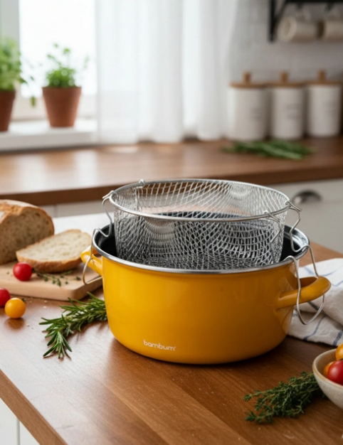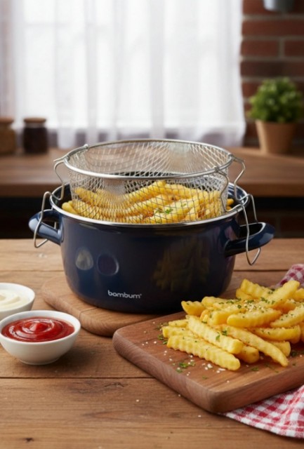 Med sitt nostalgiske design gir Bambum Nostalji stekegryte kjøkkenet ditt et stilfullt preg, og den 22 cm brede diameteren gir et godt arbeidsområde til fritering og steking.