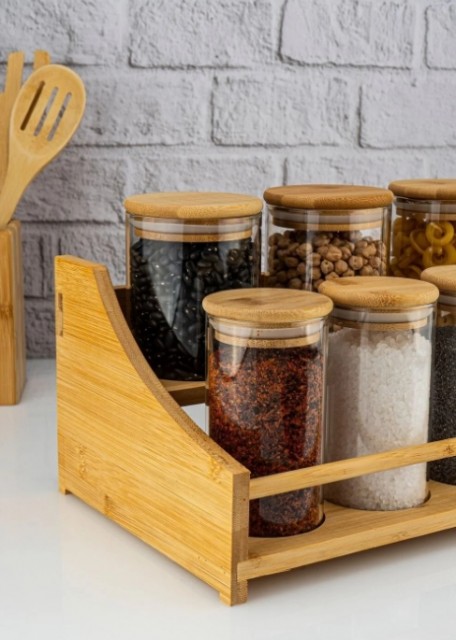 Toetasjes designet sparer plass på kjøkkenbenken og holder kryddderne pent organisert.