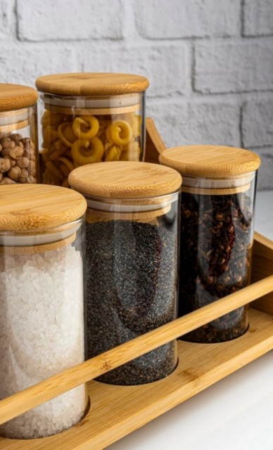 Bambusens naturlige tekstur tilfører varme og stil til kjøkkendekoren.