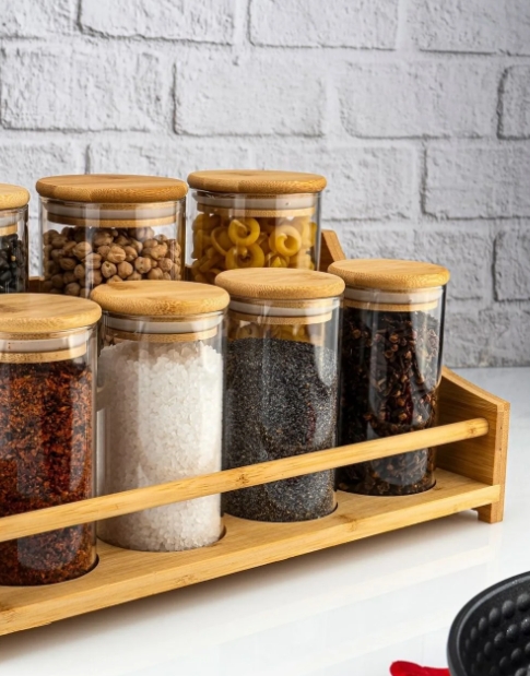 Settet med 8 deler passer perfekt til ulike krydder og bidrar til ryddighet under matlaging.