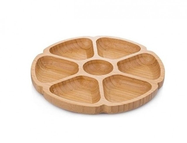 Denne tallerkenen passer ideelt til aperitiff, frokost eller familiefester, der gjestene enkelt dreier for å nå favorittsnacksen.
