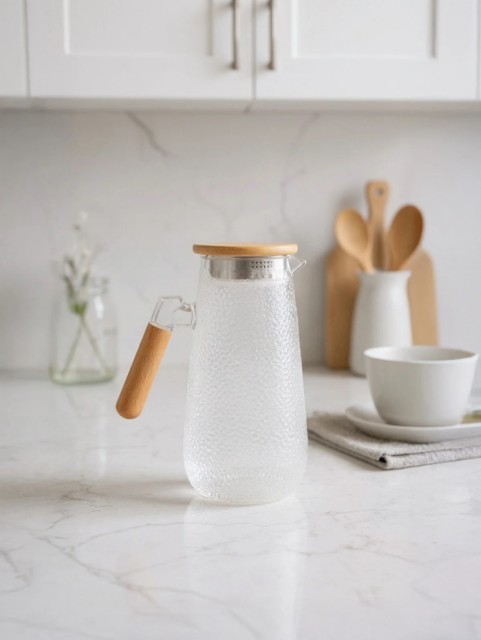 Bambuslokket beskytter innholdet mot støv og gir antibakteriell effekt, mens glasskroppen lar deg se innholdet klart. Miljøvennlig og stilrent design i beige bambus passer nordisk kjøkkenstil.