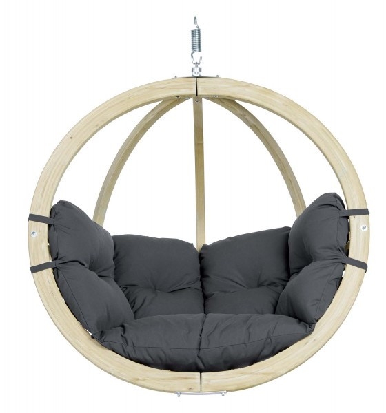 Globo Hengestol er nøye håndlaget av robust og værbestandig tre, noe som sikrer både varighet og stil. Den polstrede puten gir ekstra komfort, mens den buede formen gir en avslappende vuggebevegelse som støtter ryggen din perfekt. Denne hengestolen er like ideell for en koselig stue som for en solrik hage.